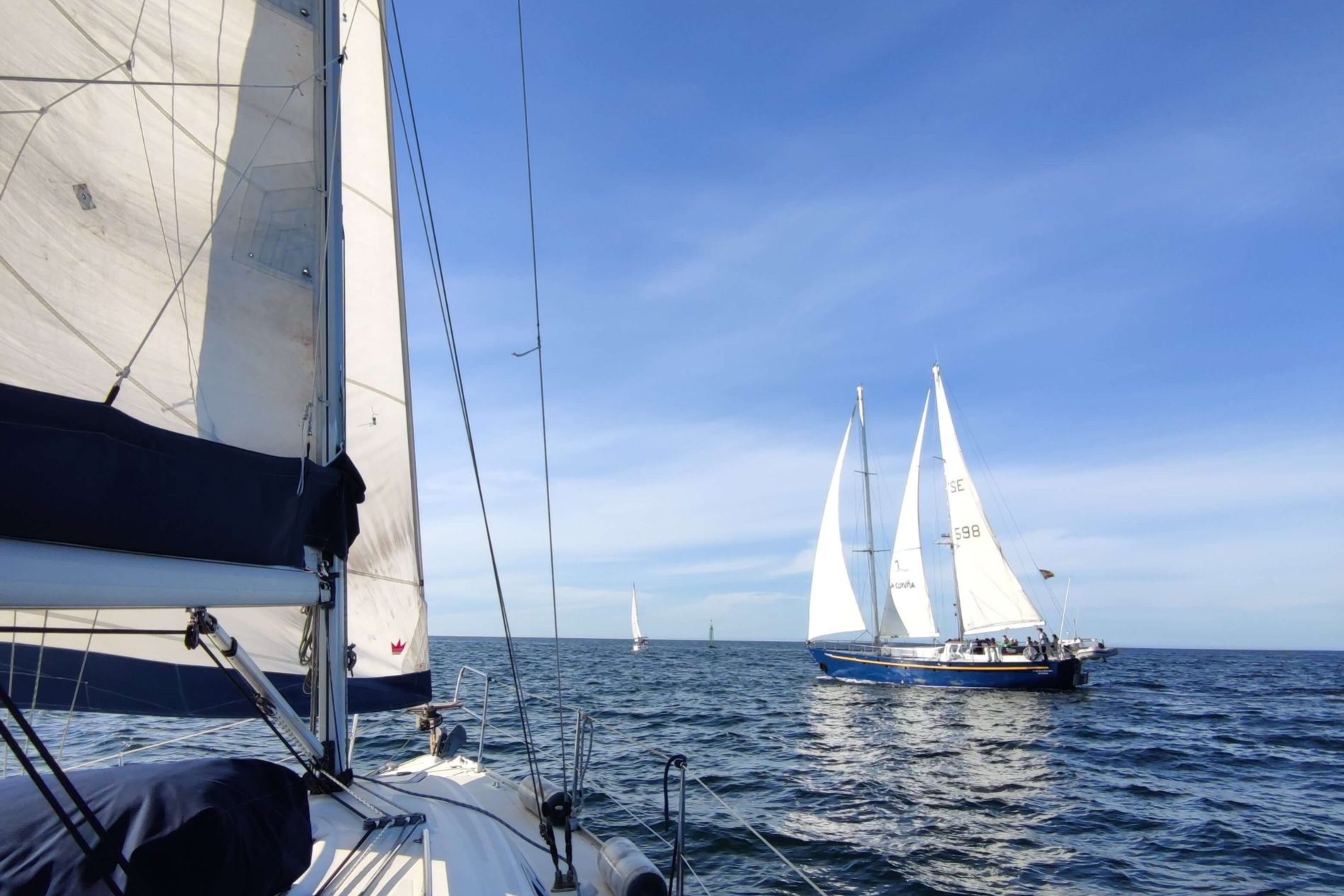Poseemos cuatro embarcaciones ubicadas en el Real Club Náutico de la Coruña, una motora intraborda cabinada modelo Orca 780 para realizar las prácticas de seguridad y navegación; y dos veleros, un Beneteau Oceanis 323, y un Bavaria 30, para la realización de las prácticas de vela y el chárter náutico. En el año 2024 hemos adquirido una embarcación fueraborda modelo Karnic 601, con el objetivo de proporcionar un servicio de alquiler en pequeñas esloras a nuestros clientes, además de poder probar otro tipo de motorización en las prácticas de navegación y enriquecer la experiencia del alumno.